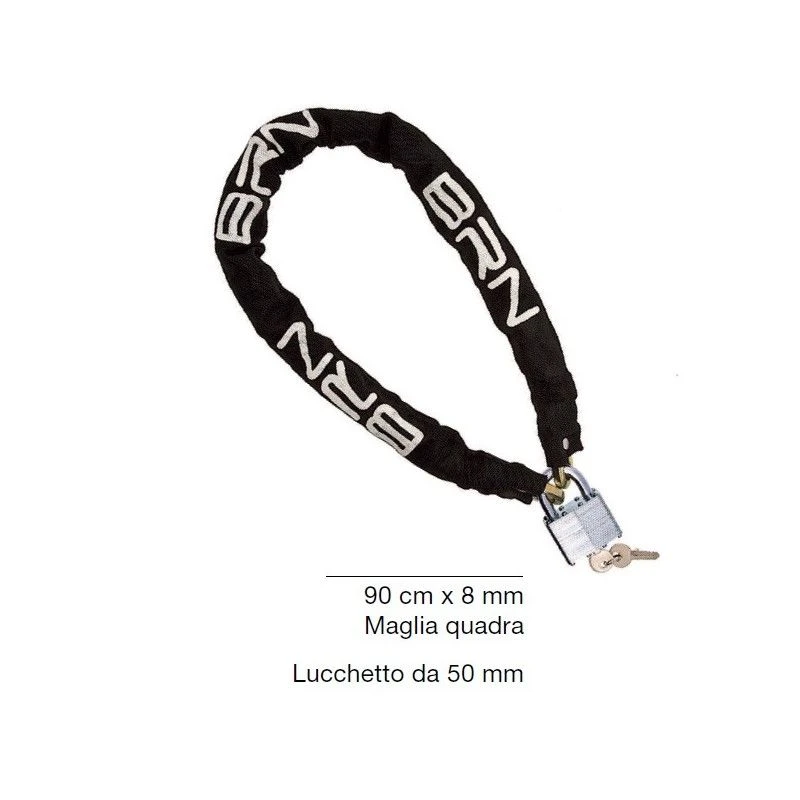Lucchetto a catena 90 cm x 8 mm maglia quadra rivestito in tessuto + lucchetto 50 mm.